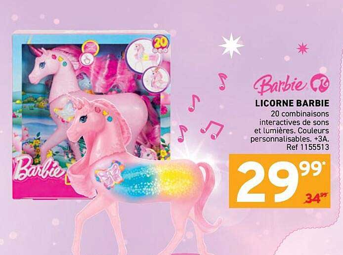Découvrez l'incroyable Licorne Barbie, un jouet interactif qui va émerveiller vos enfants. Avec ses 20 combinaisons de sons et lumières, cette licorne devient vite la compagne de jeu idéale pour stimuler l'imagination et la créativité. Pendant la période de promotion qui s'étend du 10 octobre au 24 novembre 2025, c'est le moment parfait pour faire plaisir à vos petits.