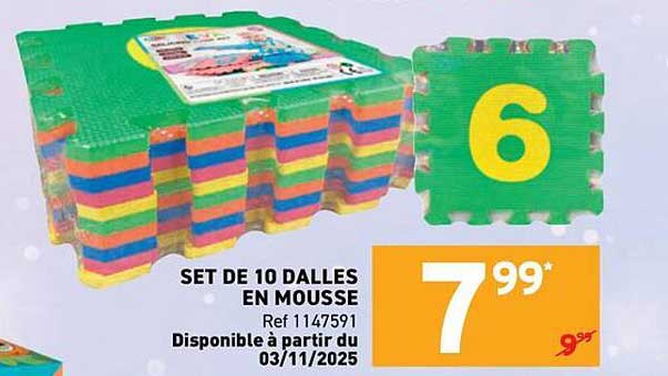 Découvrez dès maintenant la offre SET DE 10 DALLES EN MOUSSE dans le catalogue de Trafic. Cette offre est valable du 10/10/2025 au 24/11/2025.