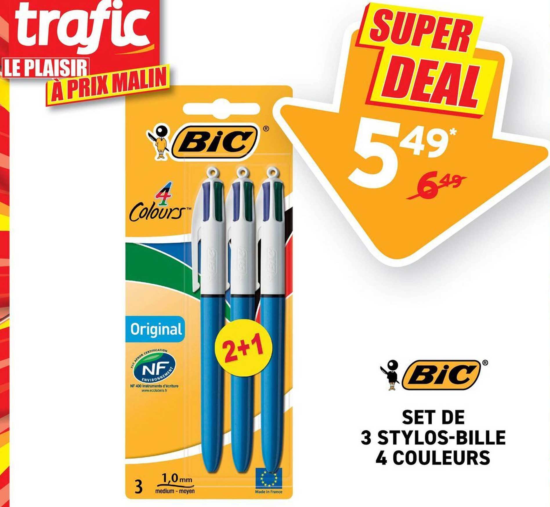Découvrez dès maintenant la offre SET DE 3 STYLOS-BILLE 4 COULEURS dans le catalogue de Trafic. Cette offre est valable du 30/07/2025 au 04/08/2025.