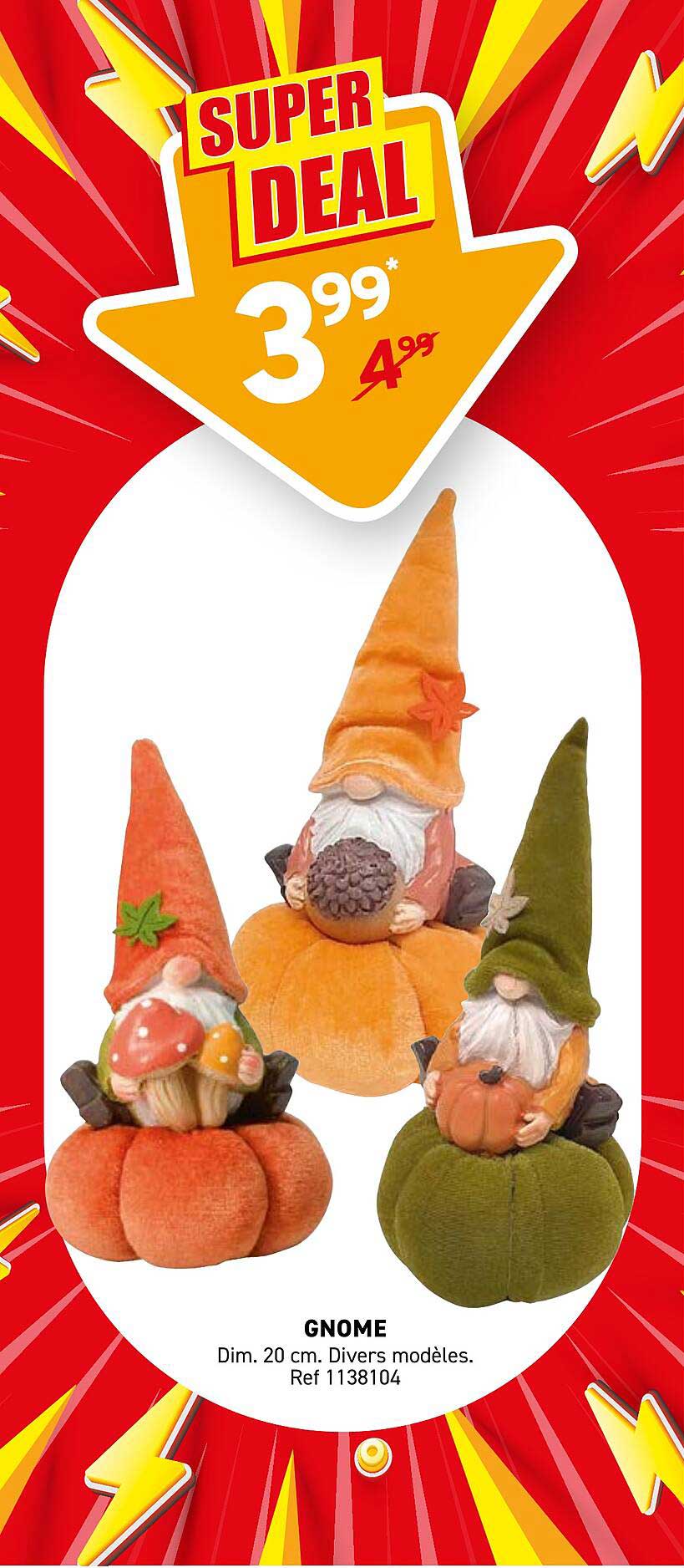 Découvrez une promotion irrésistible sur les adorables figurines de gnomes, disponibles dans divers modèles. Parfaites pour embellir votre intérieur ou offrir en cadeau, ces petites décorations sont conçues pour apporter une touche chaleureuse à votre décoration automnale. Ne manquez pas cette occasion unique de vous offrir ou d’offrir un élément qui ajoutera du charme à n'importe quelle pièce.