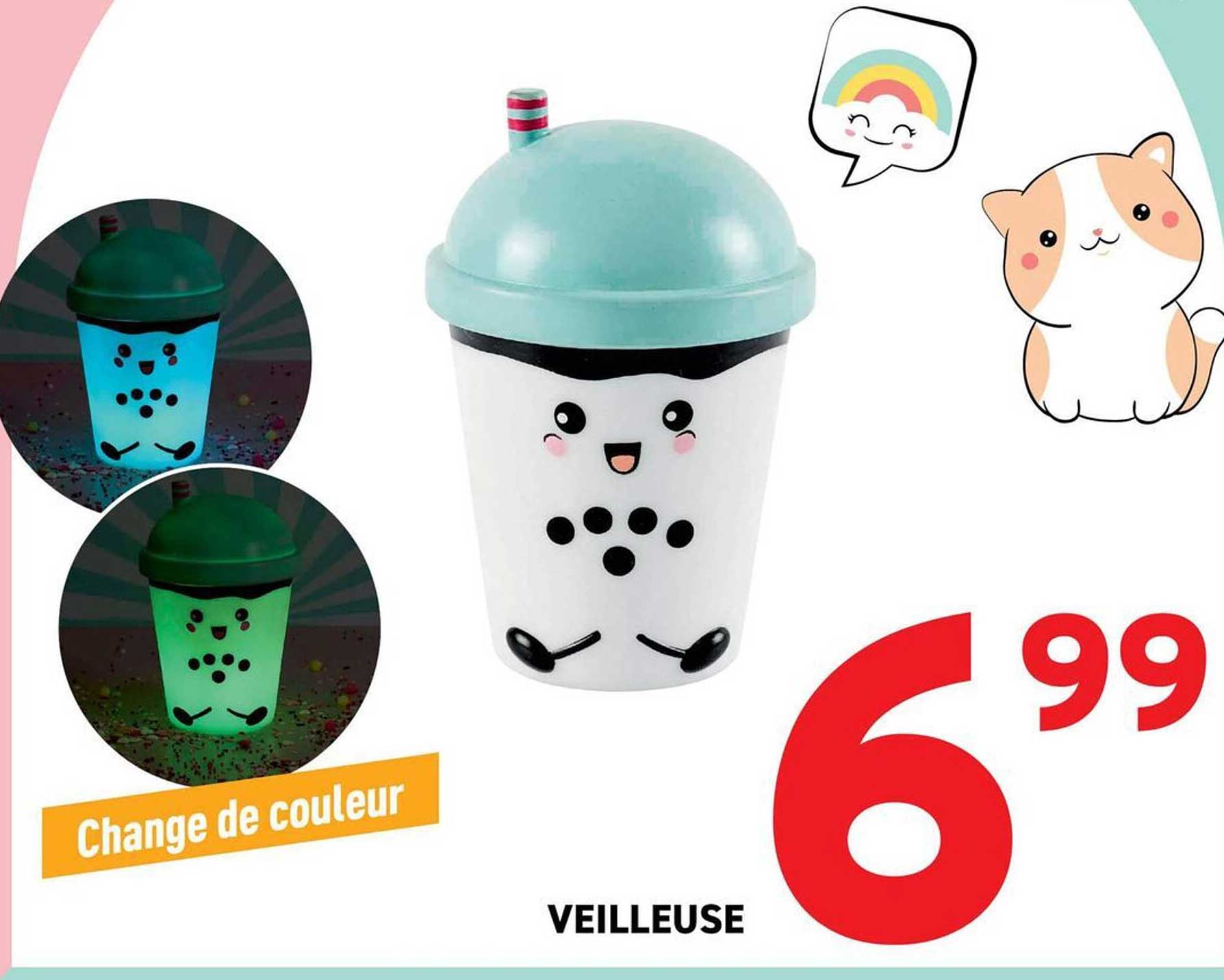 Découvrez la veilleuse tendance qui apportera une touche de magie et de douceur à la chambre de vos enfants ! Avec son design amusant de tasse à bubble tea et ses jeux de couleurs, cette veilleuse est non seulement pratique, mais aussi agréable à regarder. C'est l'accessoire parfait pour créer une ambiance chaleureuse lors des nuits paisibles.