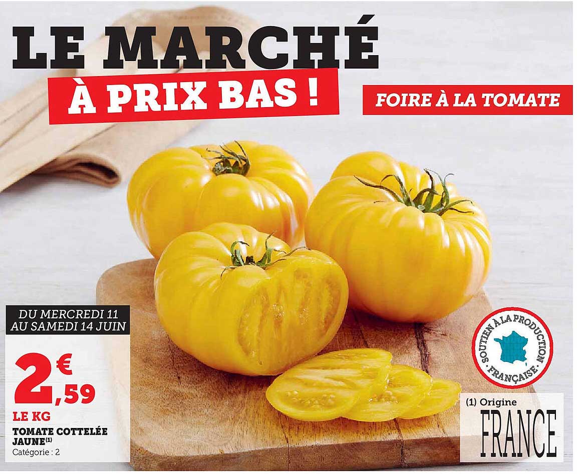 Cette semaine, U Express vous propose une offre incroyable : des tomates cottelées jaunes à prix réduit ! Du 11 au 14 juin, profitez de ce produit frais à seulement 2,59€ le kilo. Délicieuses et savoureuses, ces tomates sont parfaites pour toutes vos recettes estivales, que ce soit en salade, en sauce ou en accompagnement.