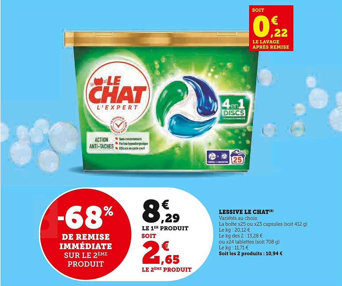 Découvrez l'offre de Lessive Le Chat chez U Express! Cette offre fantastique est maintenant disponible dans le nouveau catalogue de U Express. Profitez de cette occasion et économisez considérablement sur votre achat.
