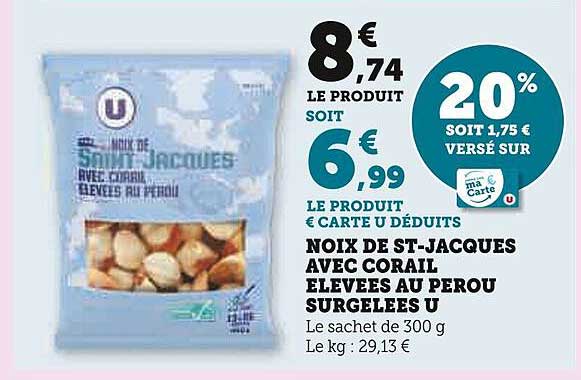 Découvrez le Noix De St-Jacques Avec Corail Eleves Au Perou Surgelees U