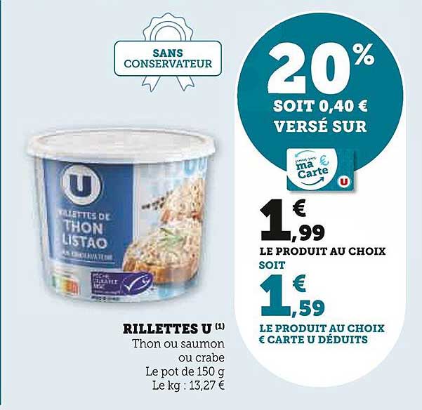 Découvrez la superbe offre de Rillettes U dans le nouveau catalogue de U Express. En plus de cette offre, vous trouverez de nombreuses autres réductions attrayantes. Vous pouvez facilement commander le Rillettes U en ligne via le site web de U Express ou l'acheter dans un magasin près de chez vous.