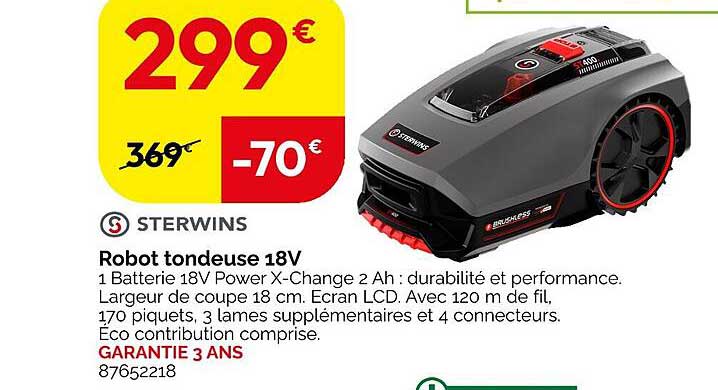 Vous voulez être informé immédiatement dès que le Robot Tondeuse 18V est en promotion? Inscrivez-vous à notre alerte d'offres. Vous recevrez une notification dès que le produit sera disponible à un prix avantageux.