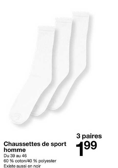 Découvrez nos chaussettes de sport homme, une offre incontournable pour tous les amateurs de confort et de sport. Avec ces chaussettes pratiques et élégantes, vous pouvez allier style et utilité. Pendant une durée limitée, ces chaussettes sont proposées à un prix exceptionnel, idéal pour renouveler votre garde-robe sportive sans vous ruiner.