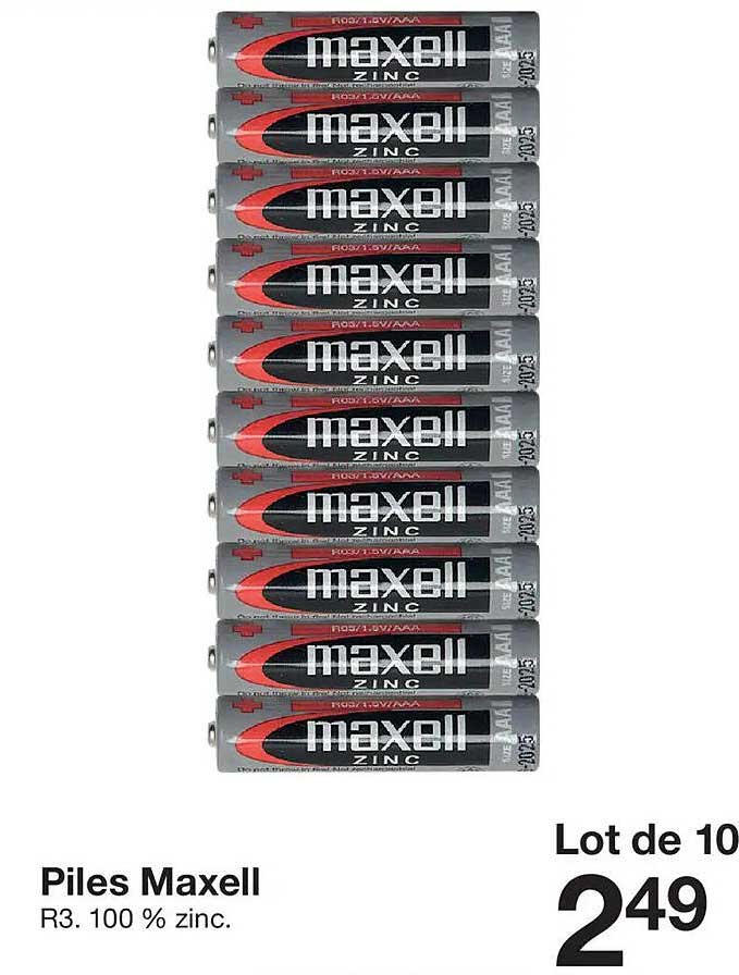 Découvrez dès maintenant la offre Piles Maxell R3. 100 % zinc. dans le catalogue de Zeeman. Cette offre est valable du 01/11/2025 au 07/11/2025.