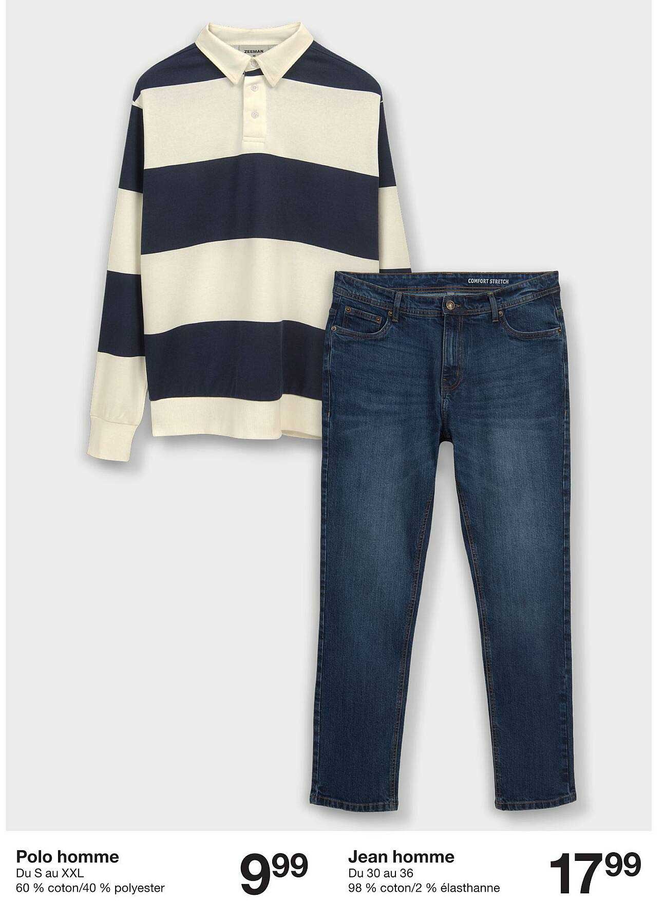 Découvrez l'offre de Polo Homme Jean Homme chez Zeeman! Cette offre fantastique est maintenant disponible dans le nouveau catalogue de Zeeman. Profitez de cette occasion et économisez considérablement sur votre achat.