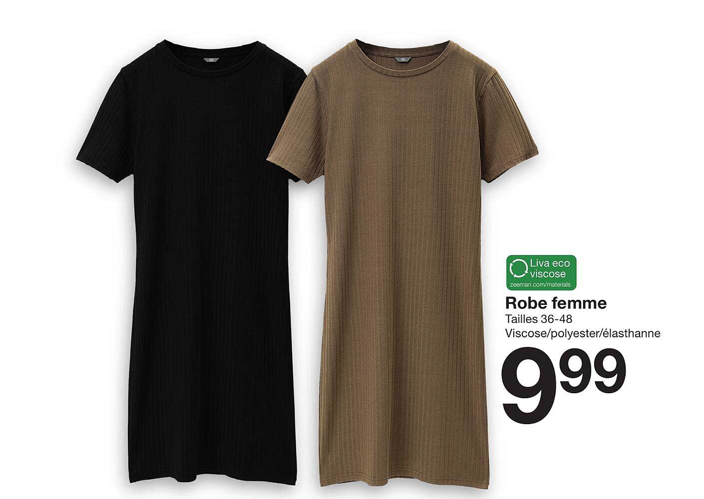 Découvrez l'offre de Robe Femme chez Zeeman! Cette offre fantastique est maintenant disponible dans le nouveau catalogue de Zeeman. Profitez de cette occasion et économisez considérablement sur votre achat.