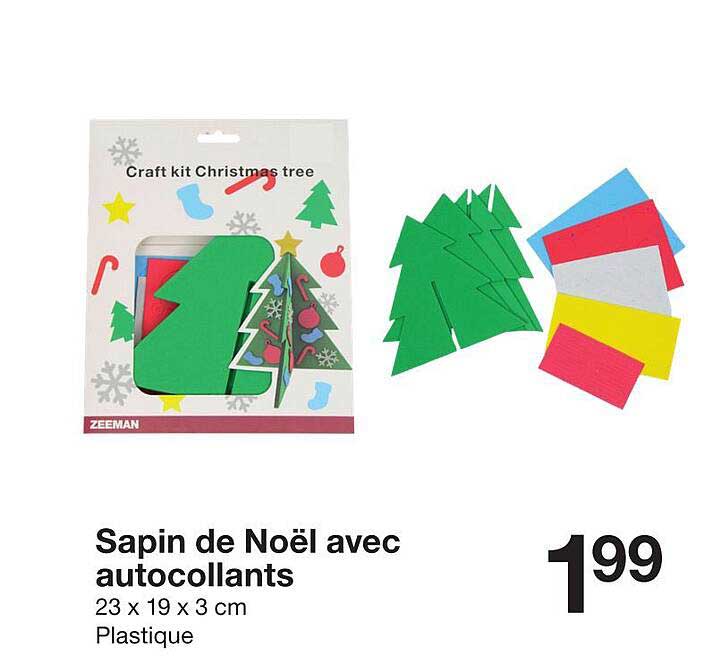 Découvrez dès maintenant la offre Sapin de Noël avec autocollants dans le catalogue de Zeeman. Cette offre est valable du 16/11/2024 au 22/11/2024.